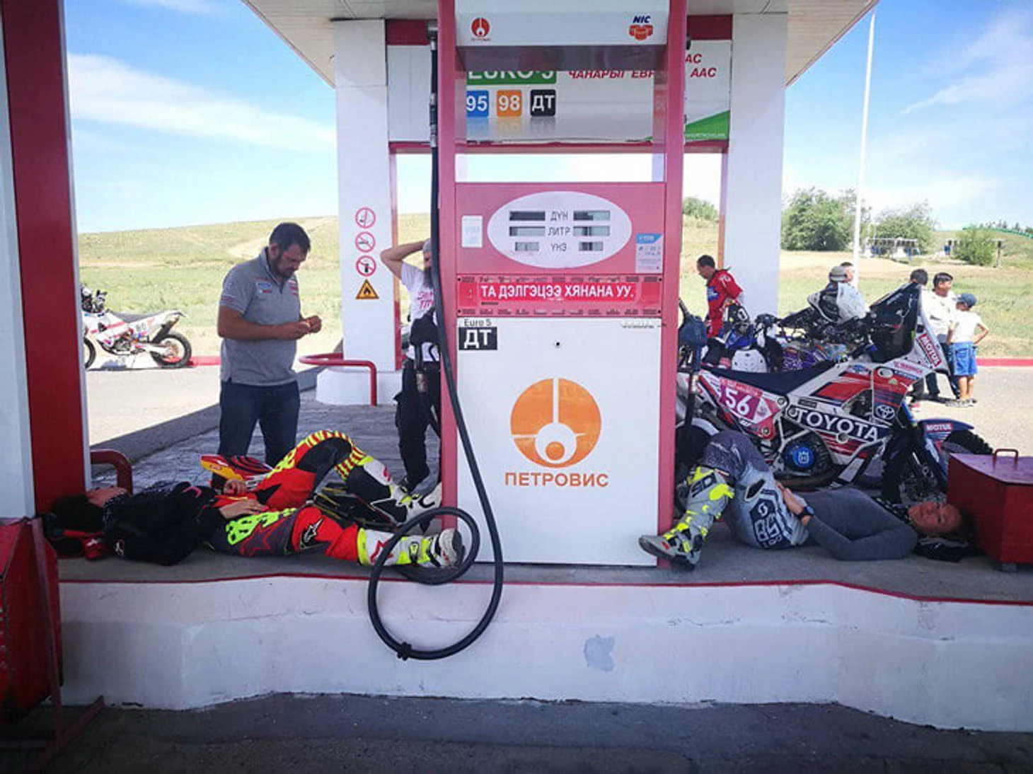 Ничего особенного, просто девчачий пикник посреди ралли-рейда: Габриэла Новотна (справа) и Анастасия Нифонтова (слева) отдыхают на обычной монгольской заправке.