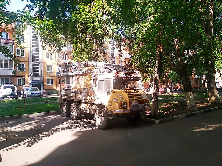С одной стороны, это обычная машина сопровождения. С другой – один из любимых участников «Шелкового пути» в Иркутске. Все потому, что эта машина несколько дней ночевала в обычных городских дворах и стала его украшением.