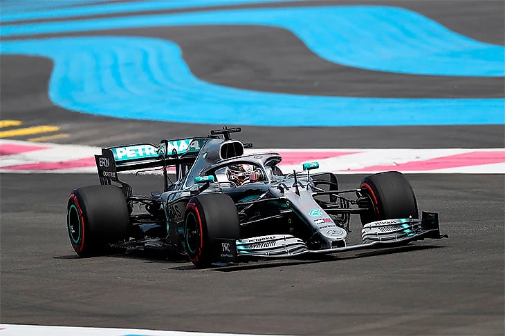 Во время одного из тренировочных кругов по «Поль-Рикару» звезда «Мерседеса» внезапно потеряла сцепление в задней части болида и заскользила в зону безопасности.