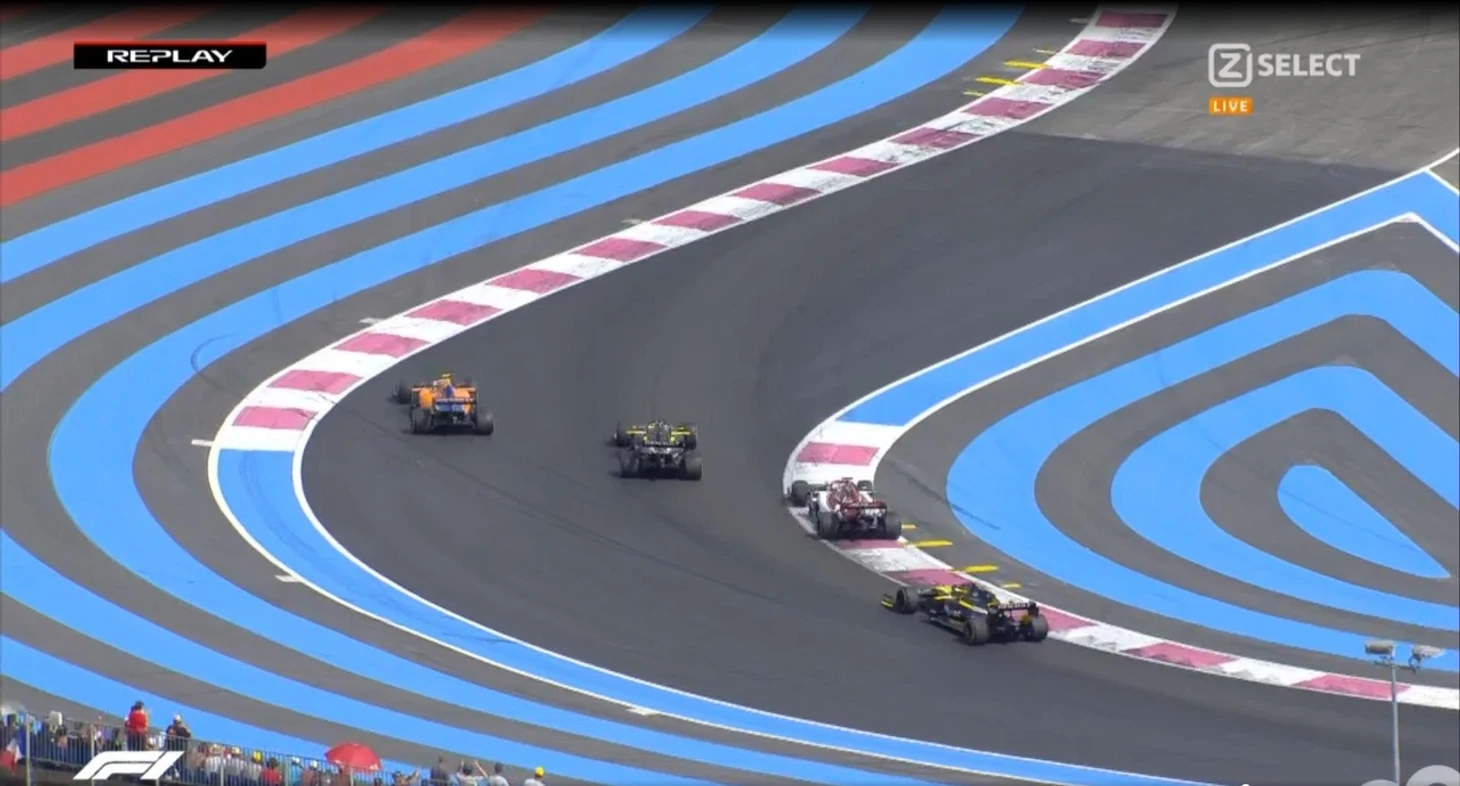 Гонку Норриса окончательно добили проблемы с педалями, вызванные все той же неполадкой гидравлики: они прорезались примерно за 5 кругов до финиша и серьезно повредили поведению машины при замедлении и разгоне. Именно тогда он сильнее отстал от напарника и подставился под сразу трех преследователей: Кими Райкконена из «Альфа Ромео» и Нико Хюлькенберга с Даниэлем Риккардо из «Рено». Ландо отбивался от атак Дэна вплоть до последнего круга — пока не случилось вот это.