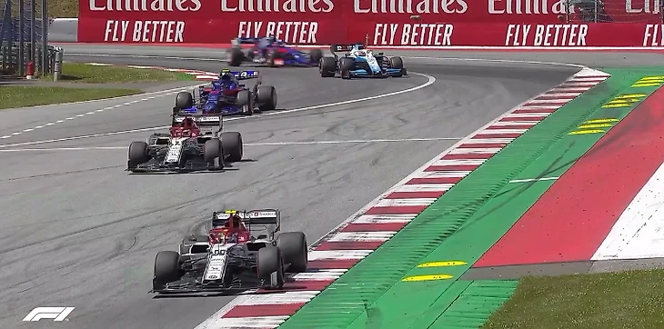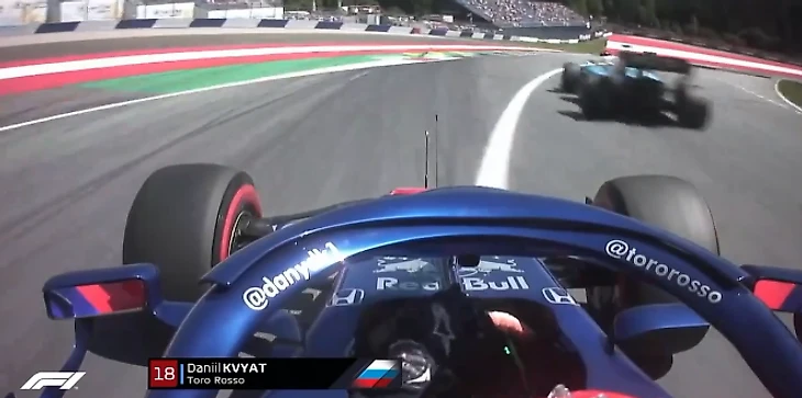 Квят выехал из поворота и наткнулся на Джорджа Расселла из «Уильямса» – россиянину пришлось съезжать с трека. Но если бы англичанина не было на пути, то лидеру «Торо Россо» не меньше помешали бы напарник Александр Албон и Кими Райкконен.