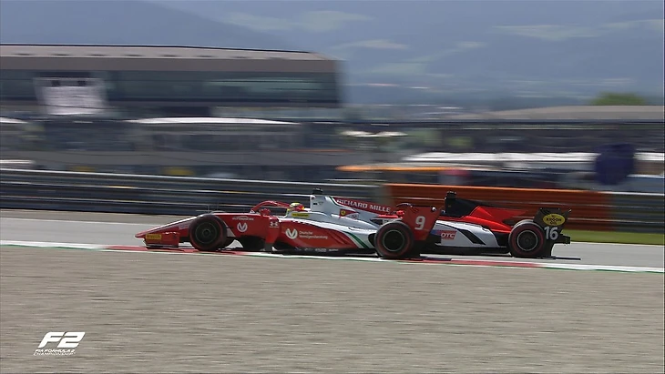После аварии Луи Делетраза Мик оказался пятым, а затем атаковал Чжоу Гуанюя.