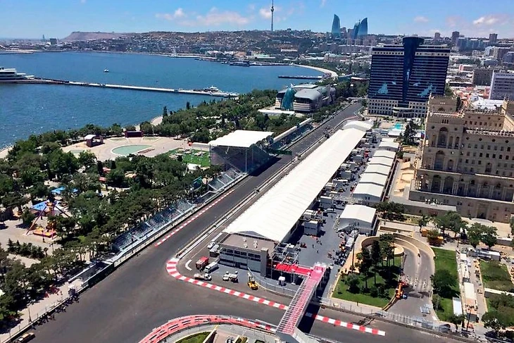 Гран-при Азербайджана проводят на городской столичной трассе в Баку — для этого движение специально перекрывают и выстраивают барьеры с трибунами и пит-лейн.