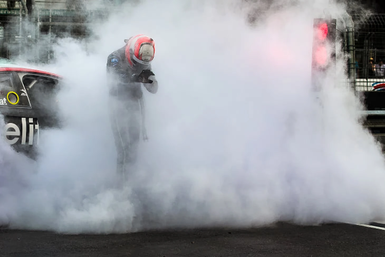 Ник поехал в конец пит-лейн, где его благополучно потушили. В результате никто не пострадал — только дым от пожара еще долго витал над трассой.
