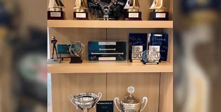 Только за перечисленные крупные соревнования Сайнс-старший получил 140 кубков и трофеев — в реальности же их еще больше. Теперь мы точно знаем: сын испанца (тоже Карлос), выступающий за «Макларен» в «Формуле-1», показал, как выглядит семейный офис в Мадриде изнутри.