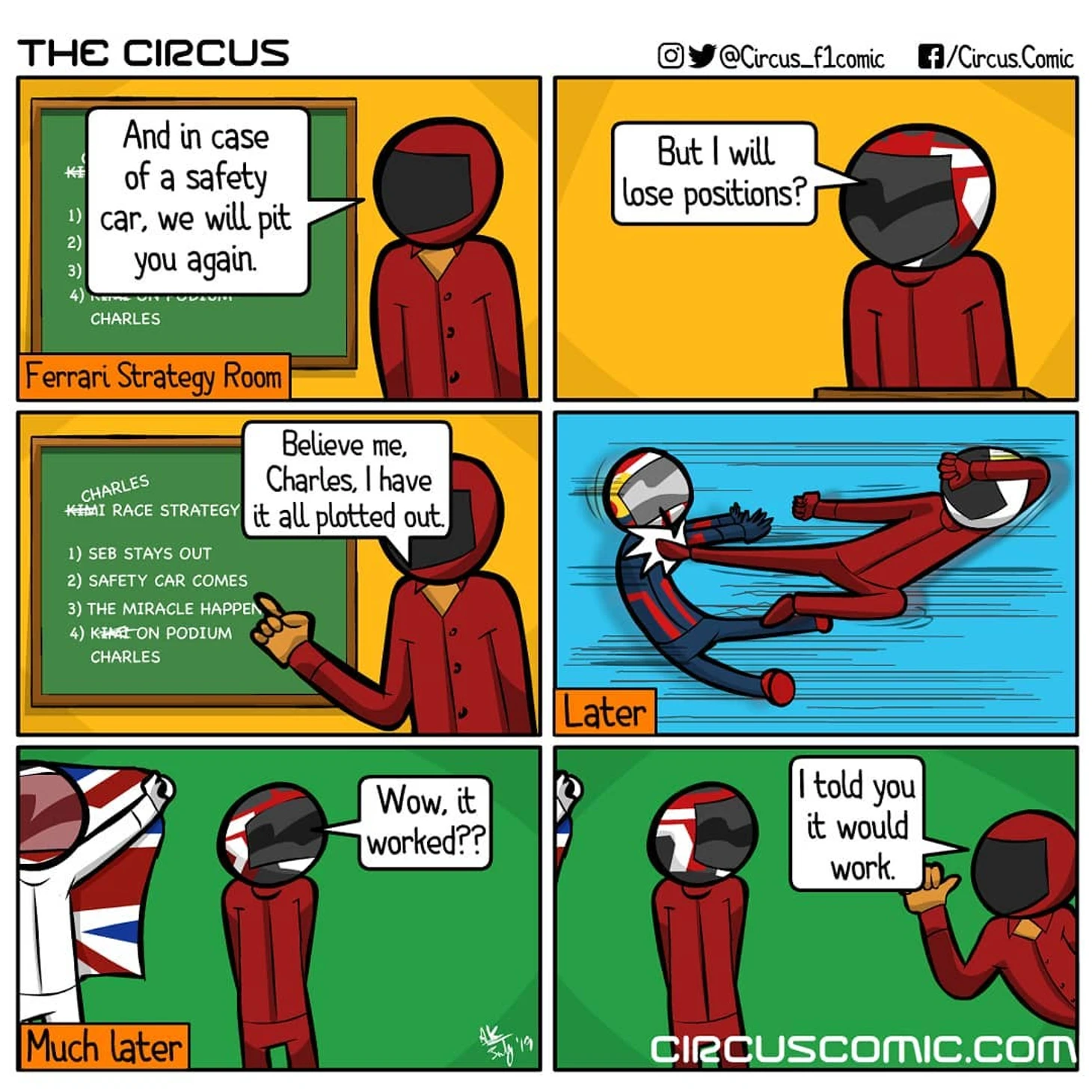 Инстаграм-художник Circus F1 Comic нарисовал шесть правдивых картинок о том, как же проходят брифинги в «Феррари».
