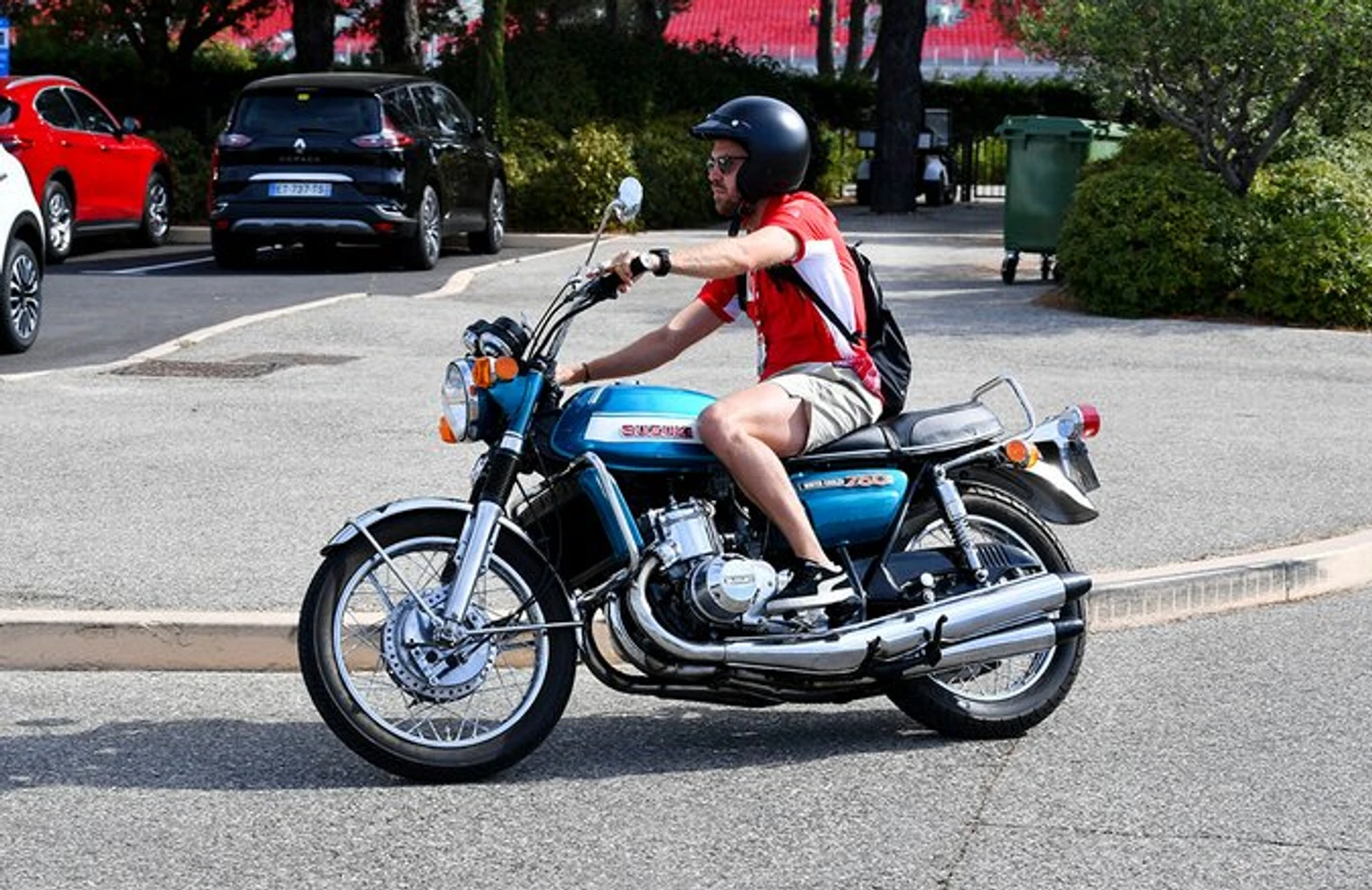 Себастьян Феттель выбрал более олдскульный мотоцикл «Сузуки» GT750 1973 года — он стоит примерно 20-25 тысяч долларов.