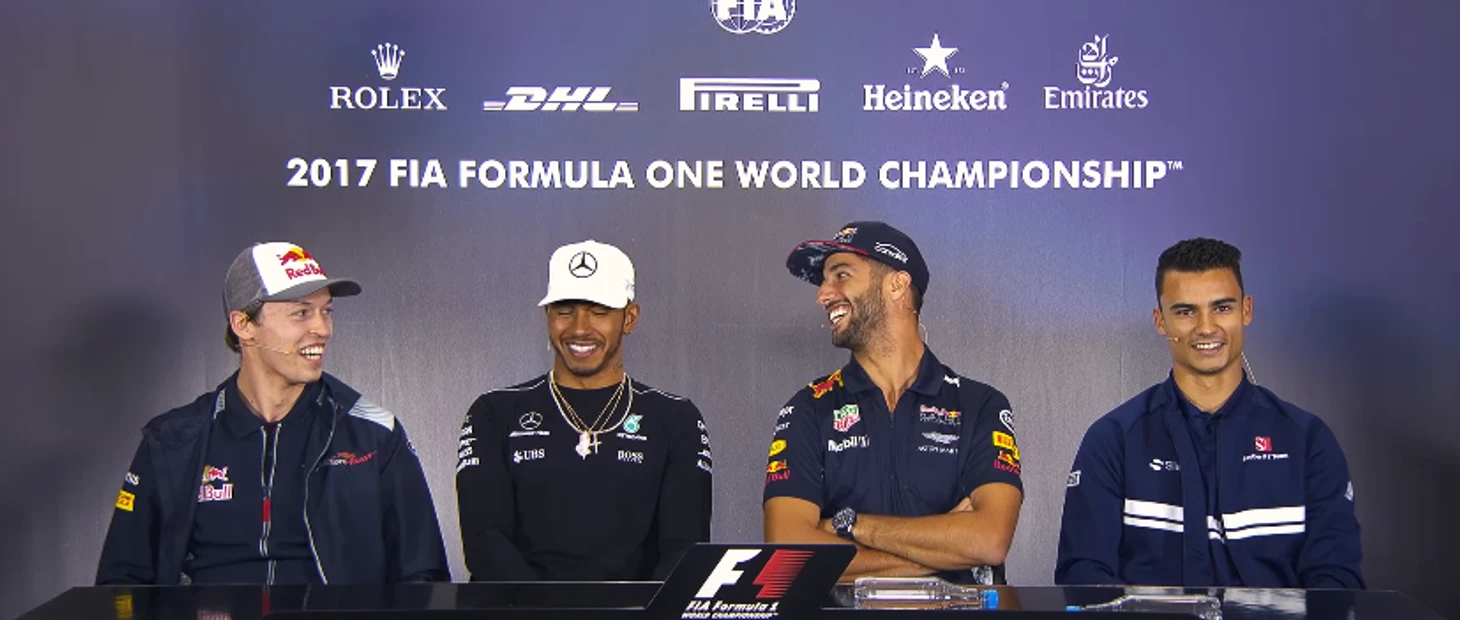 Но российским болельщикам больше всего понравится №2 — длинный разговор между журналистами, Даниэлем Риккардо, Льюисом Хэмилтоном, Даниилом Квятом и Паскалем Верляйном перед Гран-при Великобритании 2017 года.