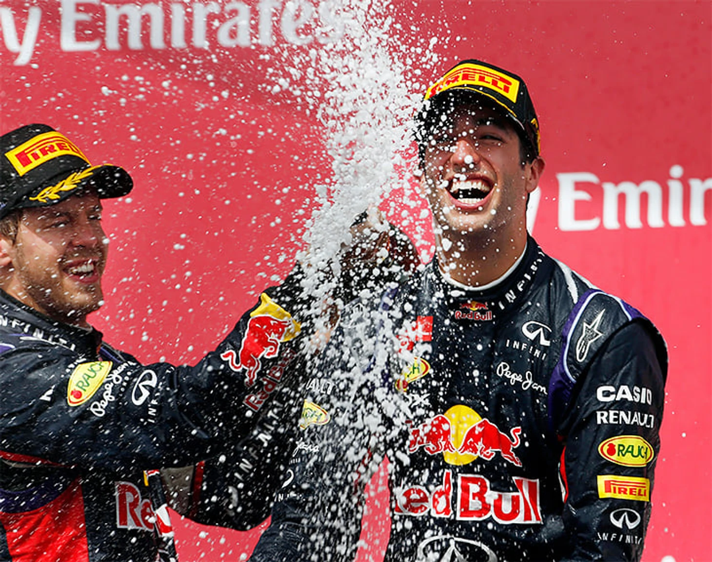 После смены регламента обороты силовой установки упали, общий объем прижимной силы снизился и изменились параметры тормозов (дебют системы brake-by-wire) — поэтому Феттель резко и одномоментно сдал. Ему пришлось полностью перестраивать технику управления болидом — тогда-то и выстрелил Риккардо.