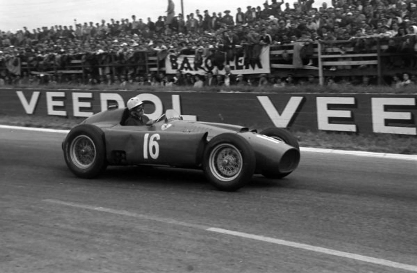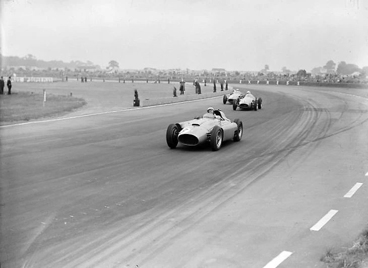 Гран-При Великобритании 1956, Ferrari D50 Эудженио Кастелотти/Альфонсо де Портаго впереди Чико Годи-Сэйлса и Луиджи Виллорези (оба на Maserati 250F)