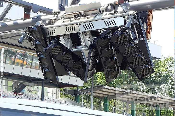 Первая авария Гран-при Германии случилась еще до его начала. Пострадал светофор, дающий сигнал к старту