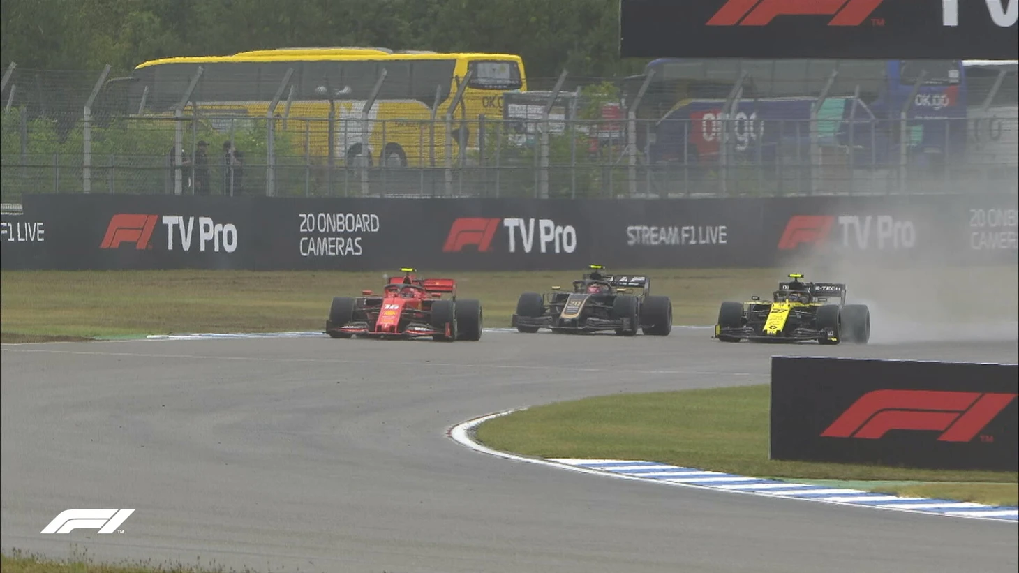 2-й круг Ферстаппен оправился после неудачного старта и вышел на третье место, сместив Кими. Леклер пока застрял за Хюлькенбергом. А Сайнс с Магнуссеном борются с контактом!