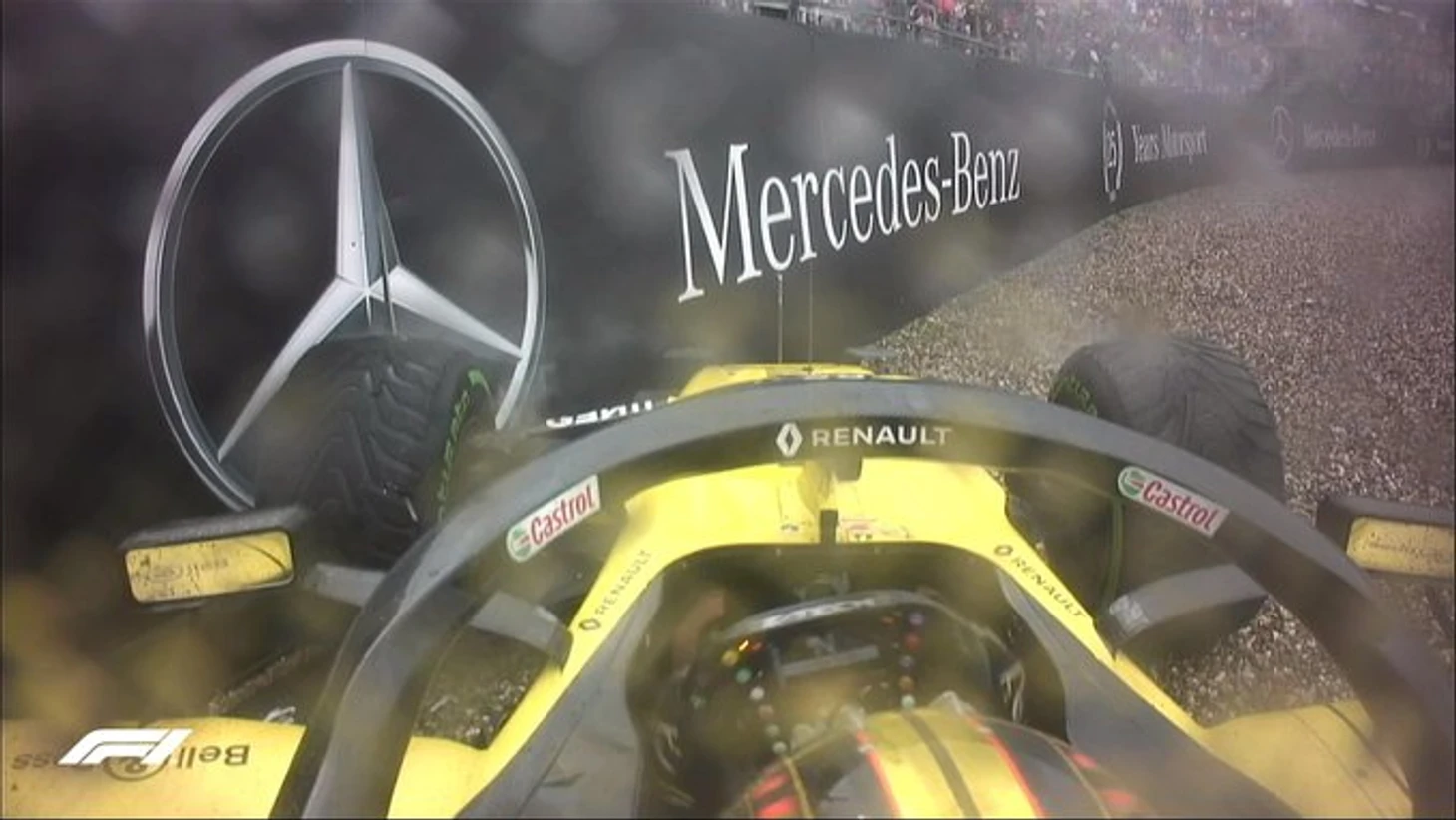 19-й круг Хюлькенберг обогнал Райкконена в борьбе за 5-е место. А Леклеру сообщили, что он едет по трассе значительно быстрее остальных.