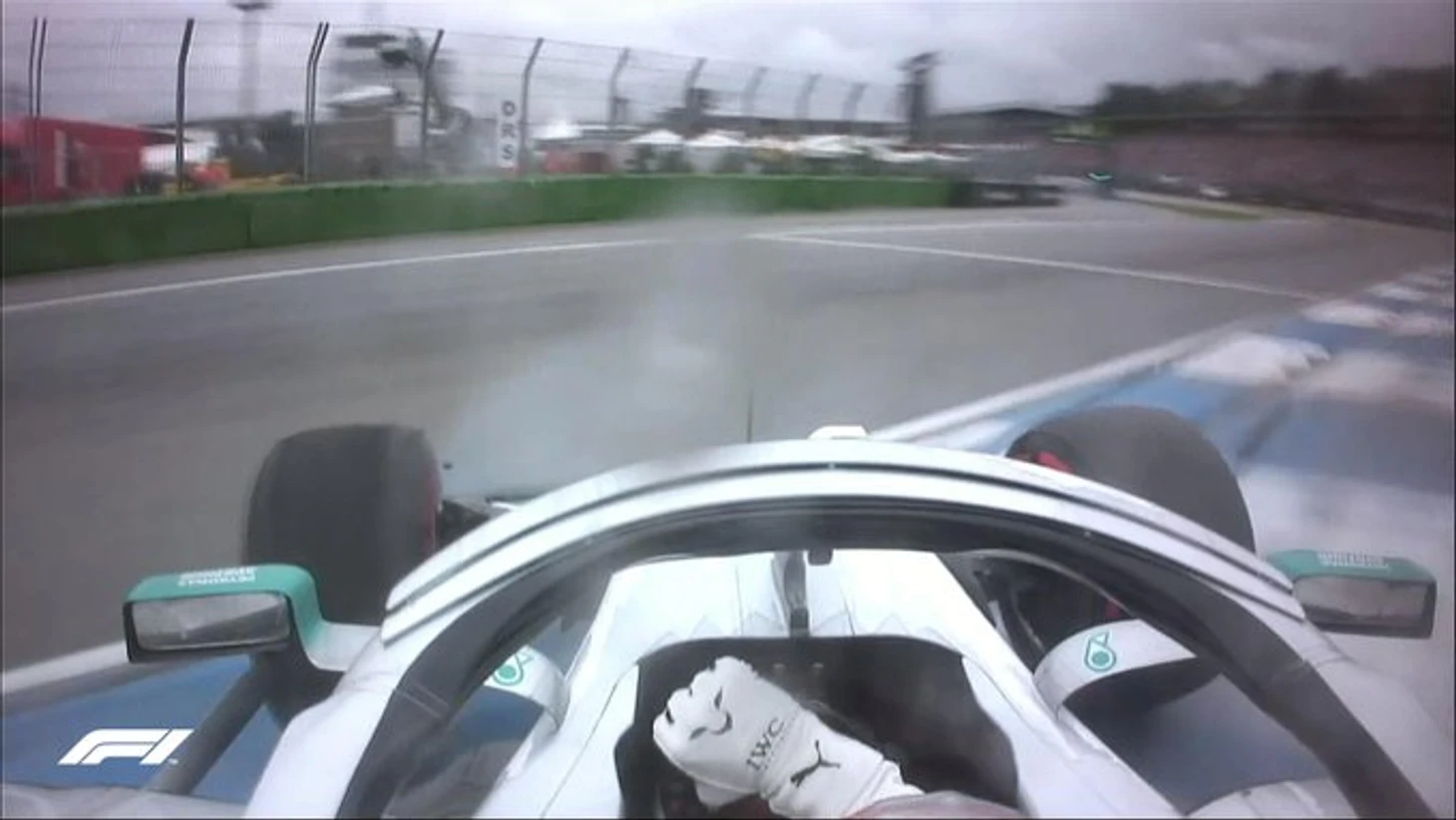 22-й круг Хэмилтону сообщили, что на пит-лейн идет дождь!