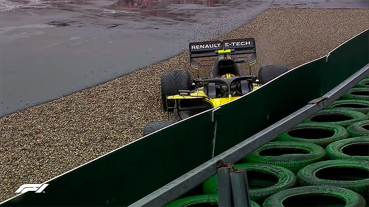 Пилот «Рено» Нико Хюлькенберг в какой-то момент ехал вторым и всерьез претендовал на первый в долгой карьере подиум, но сначала откатился на четвертую позицию, а затем разбил машину все в том же «Зюйдкурве».