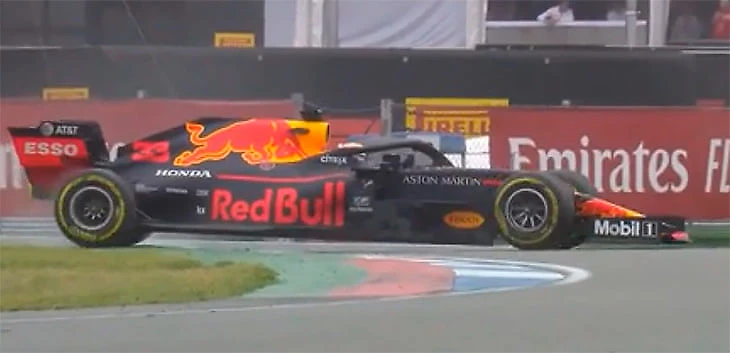 Макса Ферстаппена развернуло на 360 градусов, но голландцу тоже повезло: никаких повреждений его RB15 не получил.