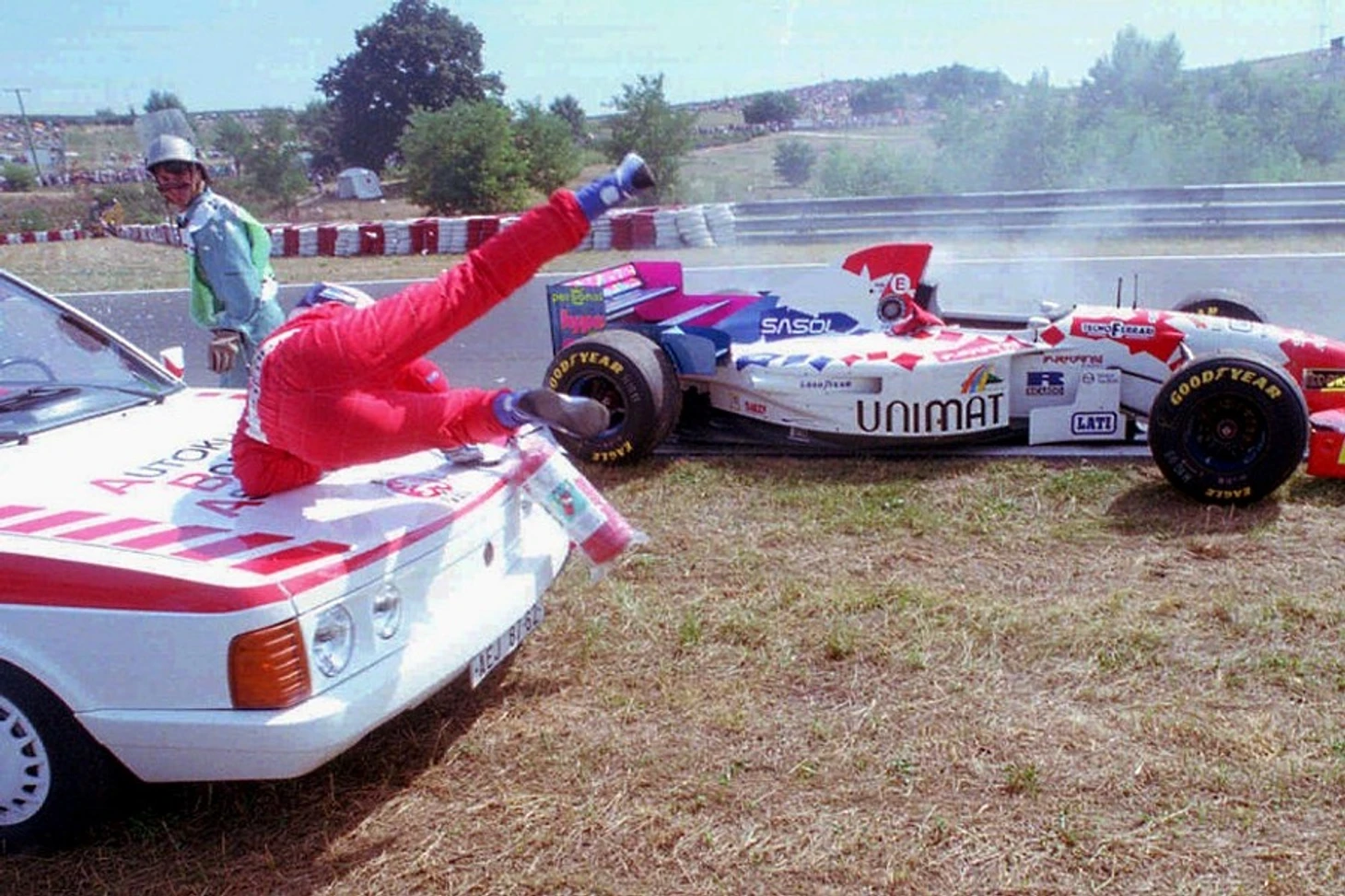 Пожалуй самый невезучий пилот, Таки Иноэ, который выпрыгнул из своего загоревшегося болида и принялся его тушить. Однако, маршалы, спешившие на помощь, так разогнались, что не смогли вовремя остановить машину и сбили пилота. В этом происшествии никто не пострадал.
