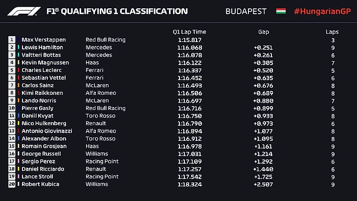 16:15 Грожан на восьмое взлетел и спихнул в боттом-5 Албона. Расселл, кстати, аж 15-й – «Уильямс» в Венгрии явно подтянулся.