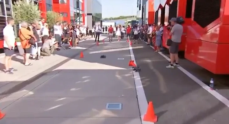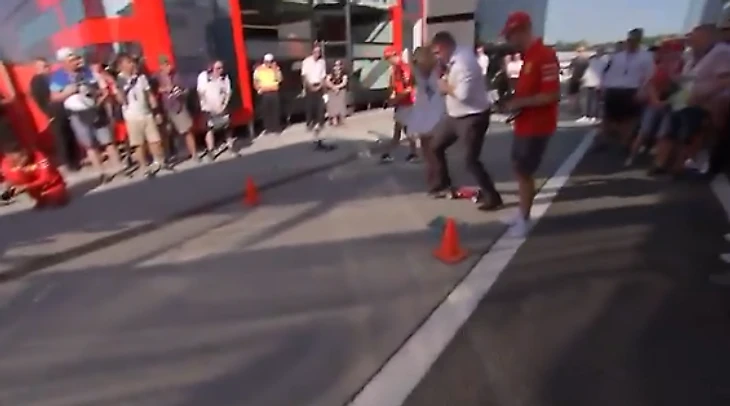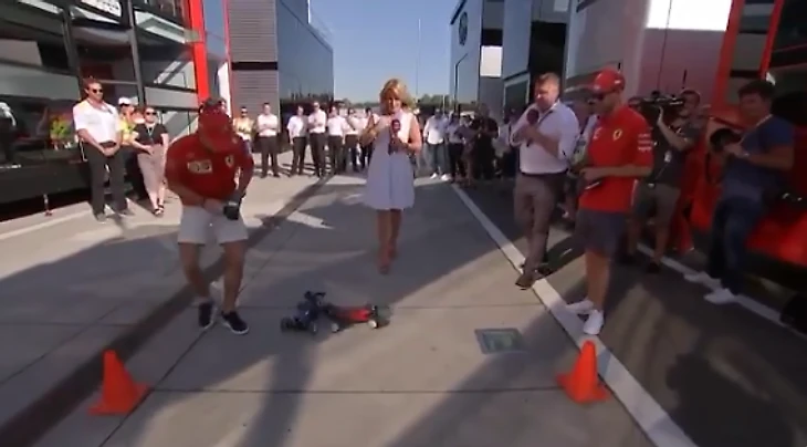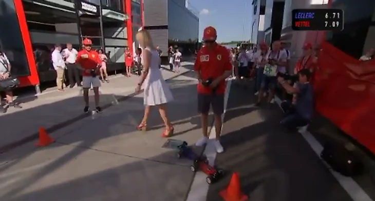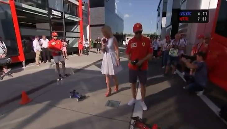 На Гран-при Венгрии гонщики Скудерии сражались не только на гоночном треке «Хунгароринга»: съемочная команда Sky Sports F1 подготовила для Себастьяна Феттеля и Шарля Леклера еще и мини-гоночный трек у моторхоума команды с машинками на радиоуправлении и конусами. Пилоты должны были объехать на время все препятствия, а потом вернуться на финиш.