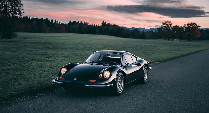 Его история началась с демонстрации двух выставочных экземпляров фирмой Pininfarina в 1965 и 1966 гг., а в 1968 году он был запущен в производство под маркой Dino 206GT. Даже без фирменного значка «Феррари» это был один из самых великолепных автомобилей компании. Его двухлитровый двигатель развивал мощность 180 л.с. при 8000 об/мин, и это в автомобиле, который был невелик в размерах, лёгок и невероятно динамичен. Стоит отметить, что двигатель был полностью выполнен из алюминиевых сплавов, что и делало его таким легким. Спорткар Dino 206GT разгонялся до 97 км/ч всего за 6.8 секунды, а максимальная скорость автомобиля составляла 235 км/ч.