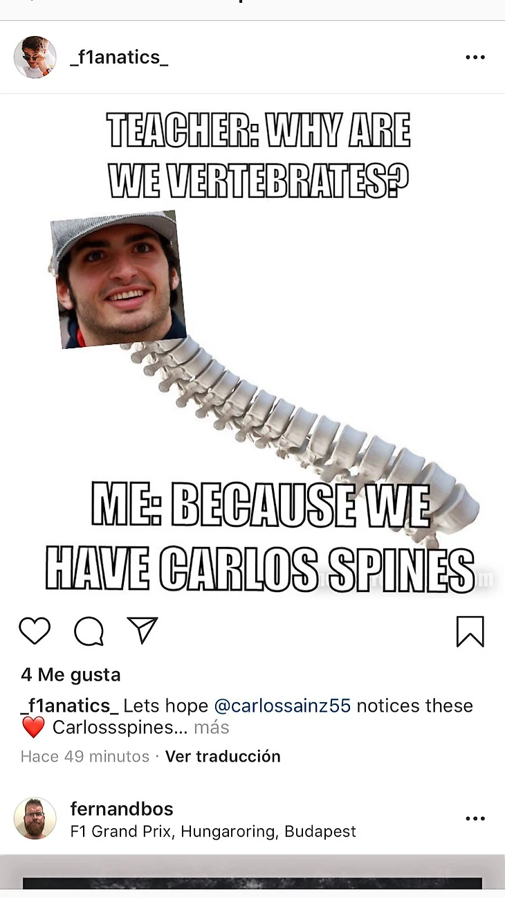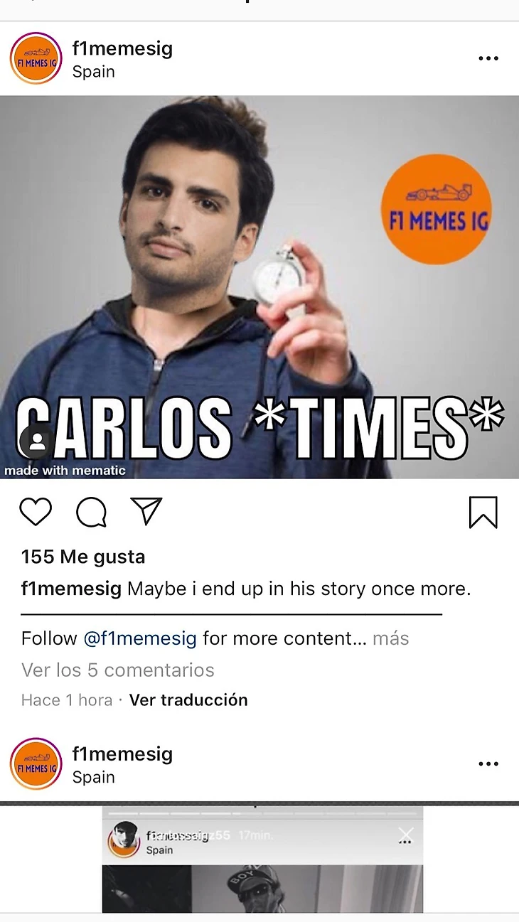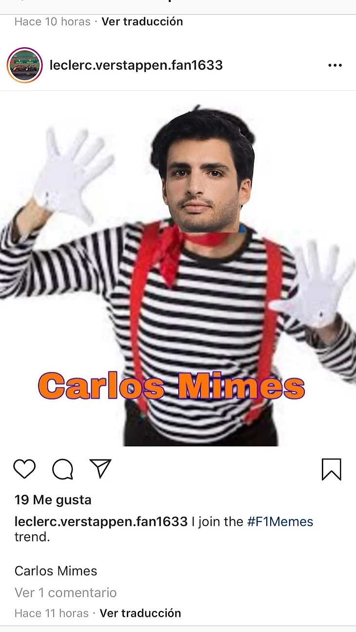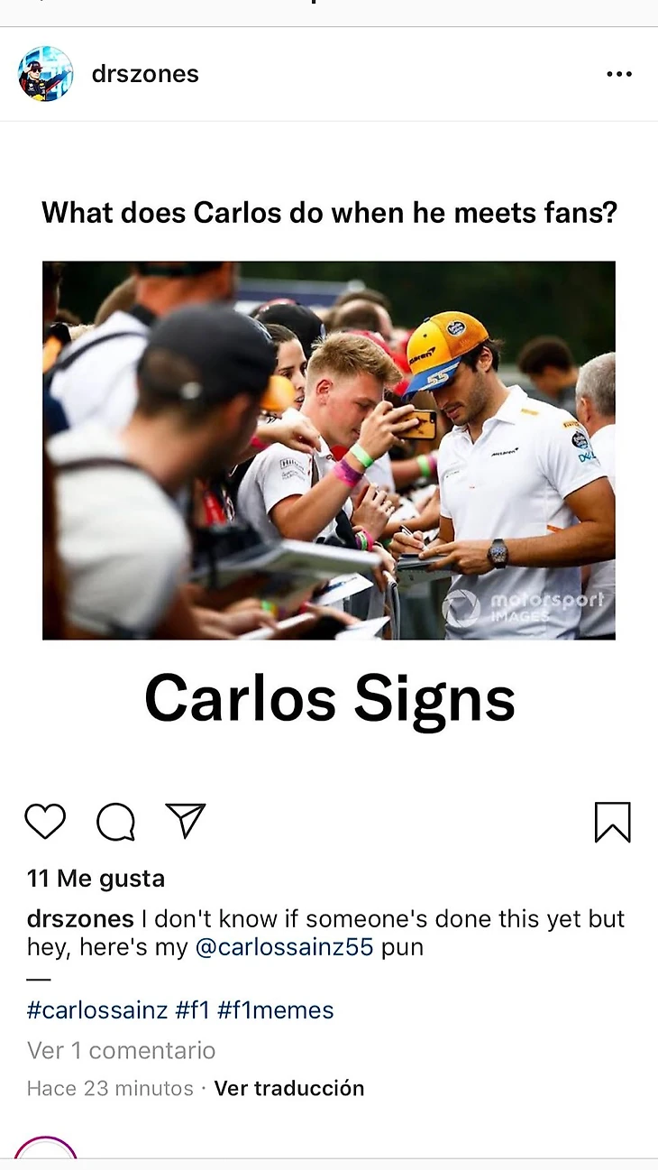 В 20-х числах августа фанаты «Макларена» устроили настоящий флэш-моб с мемами насчет звучания фамилии пилота — и испанец запостил себе в сториз все увиденное.