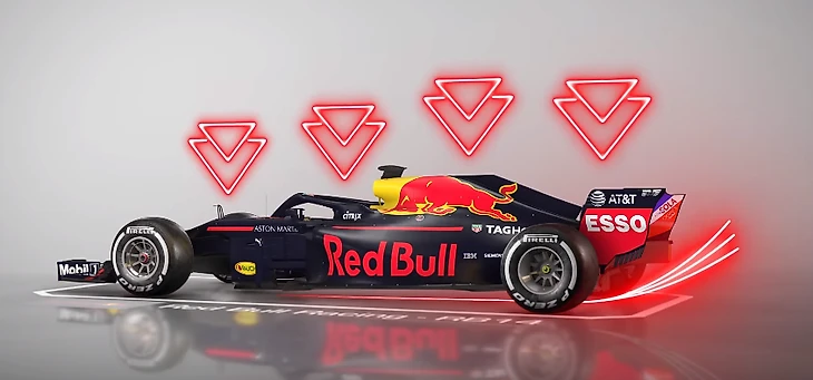 Таким образом создается некое подобие граунд-эффекта, поскольку система работает по схожей системе повышения скорости потока под днищем. Это позволяет «Ред Булл» уменьшать размер заднего антикрыла по сравнению с болидами соперника — а следовательно и выигрывать еще и максимальной скорости на прямых.