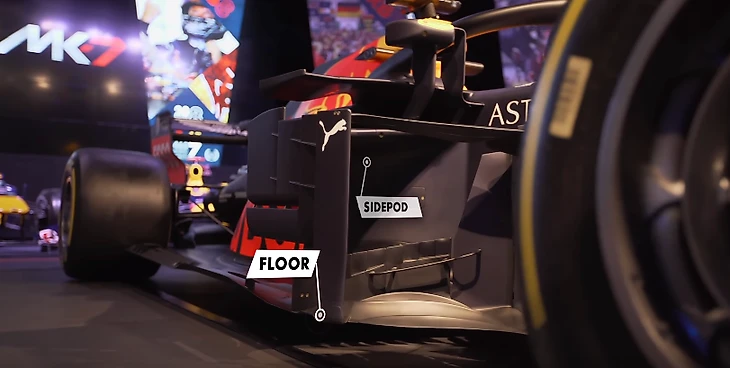 (Sidepod – боковой понтон, floor – днище).