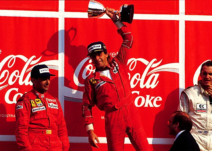 Вот так за 13 километров до финиша - всего за два круга до победы - Сенна стал зрителем. Ни он, ни Шлессер не пострадали, но их автомобили... Гонку выиграл Бергер, вторым финишировал Альборетто. Оба - на «Феррари», что вызвало бурю восторга у местных болельщиков, десятки тысяч которых сорвались с трибун и окружили пьедестал почета. Долгожданную победу итальянских машин они приветствовали, размахивая флагами с надписью: «Вива, "Феррари"!»