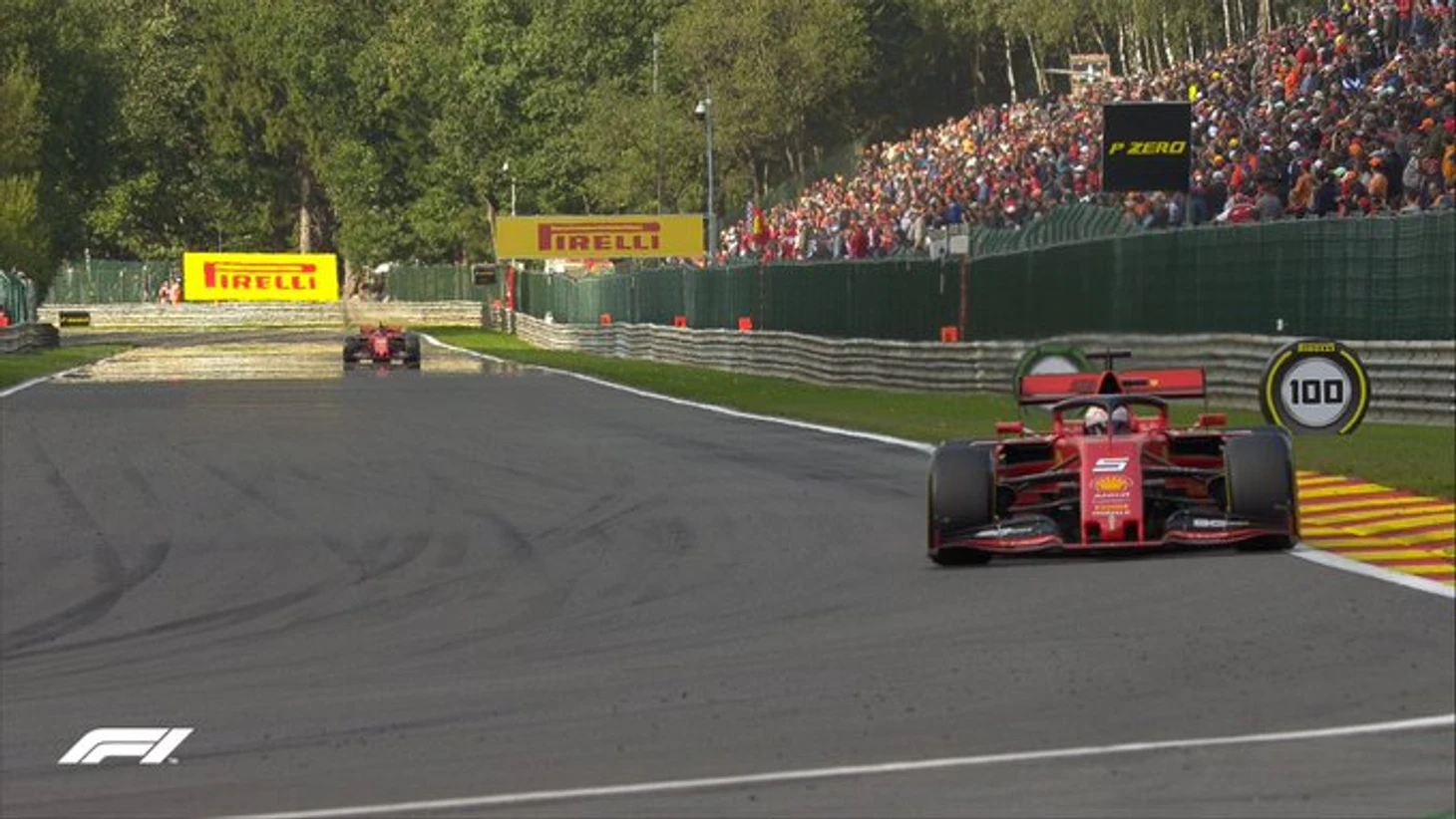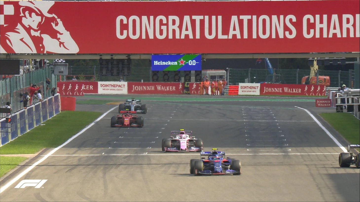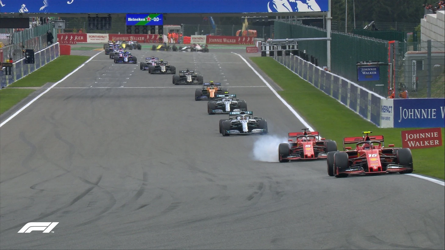 5-й круг Машина безопасности наконец-то покинула трассу, у нас рестарт! Леклер уверенно удержал лидерство и не дал Феттелю провести атаку. Сам Феттель ошибся в первом повороте, заблокировав колеса. Но на прямой «Кеммель» Хэмилтон не смог атаковать «Феррари», поскольку ему пришлось отбиваться уже от Боттаса!