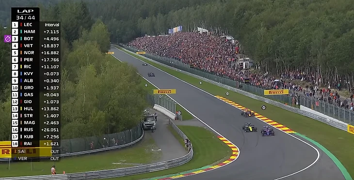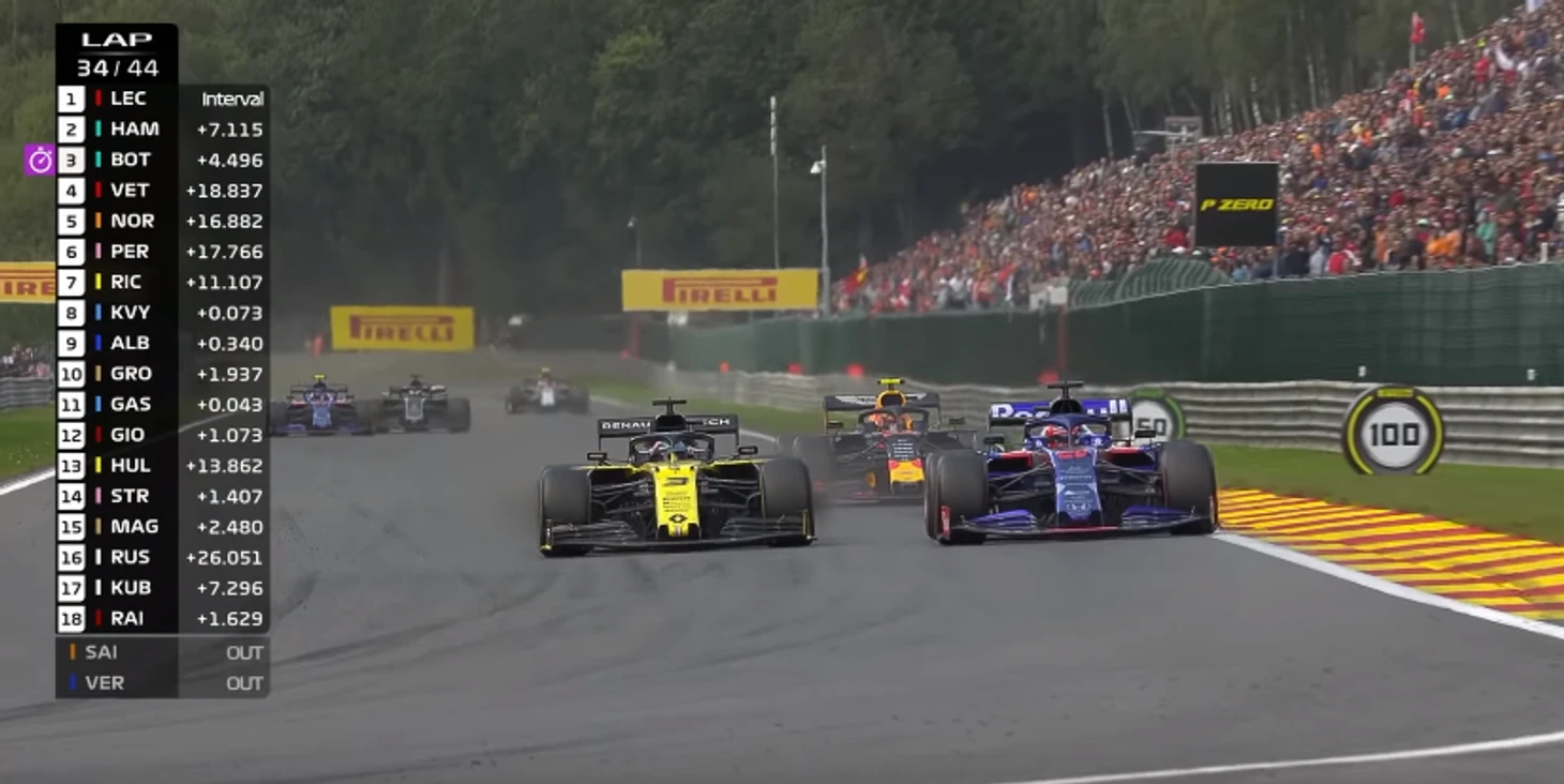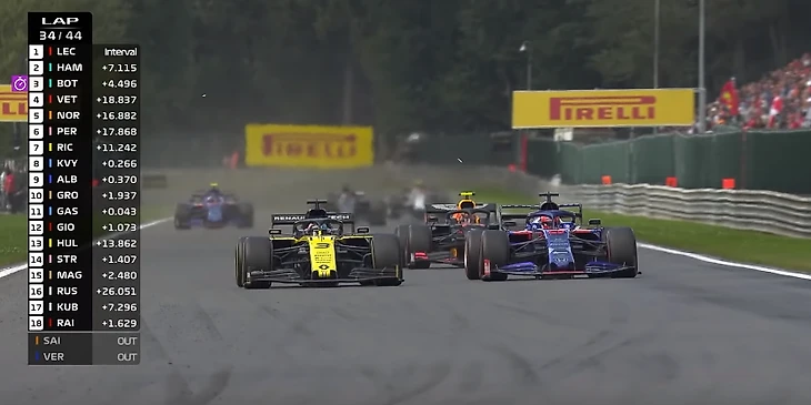 Даниил сдерживал «Ред Булл» еще 4 круга, но «Спа-Франкошрам» все-таки не похож на австралийский трек (на котором Квят приехал впереди одного из «Ред Булл»): здесь длинные прямые и мало поворотов с одной возможной траекторией, так что долго держать позади намного более эффективный и быстрый болид просто невозможно. Особенно когда тот открывает крыло DRS. Албон в итоге объехал Квята как стоячего.