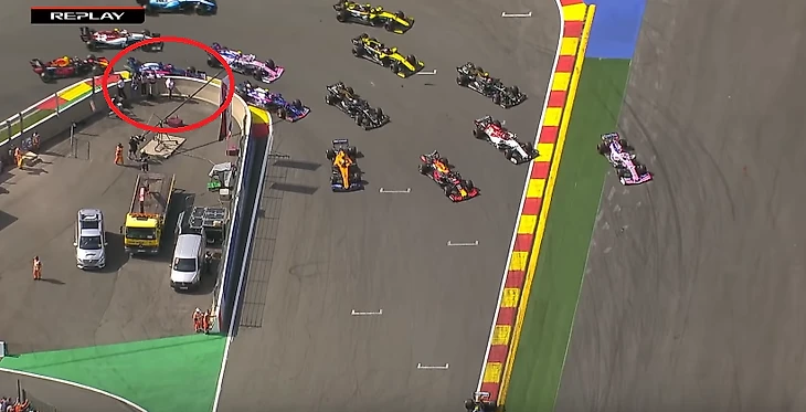 Также из-за верно выбранной позиции россиянин без проблем объехал еще и все аварии (столкновение Кими Райкконена и Макса Ферстаппена, а также поврежденный болид Даниэля Риккардо) и атаковал Ланса Стролла.
