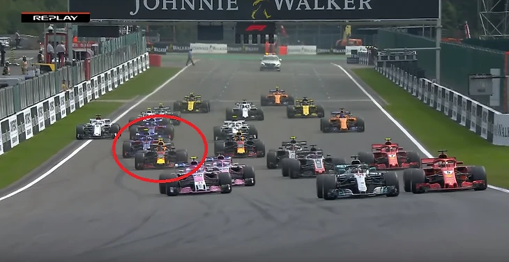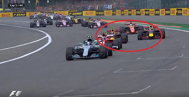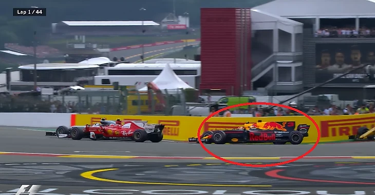 К примеру, посмотрите, как голландец стартовал в 2018-м с седьмого места: нырнул вовнутрь, опередил все того же Кими, увильнул от завала и спокойно выехал в «О Руж» шестым.