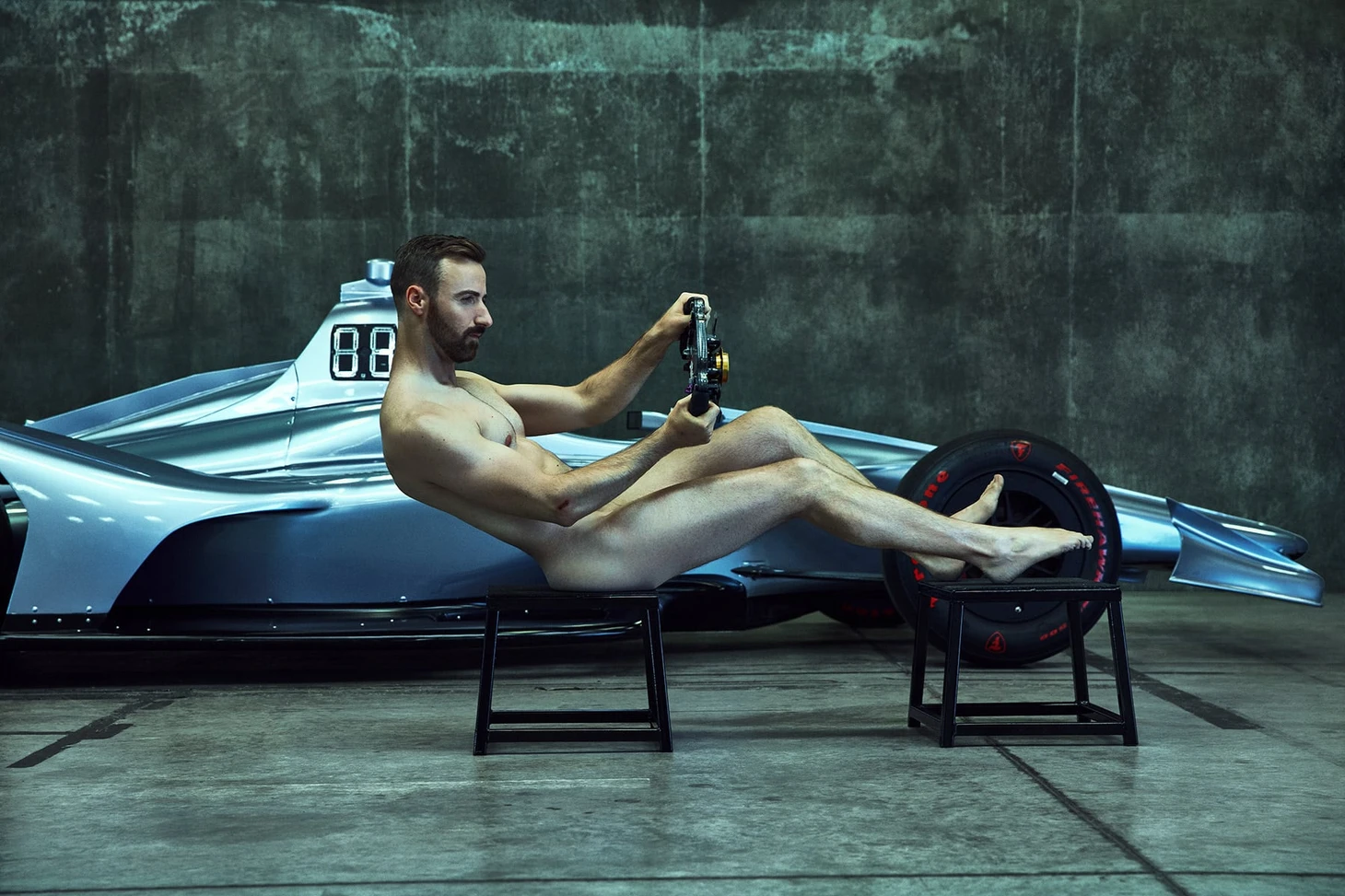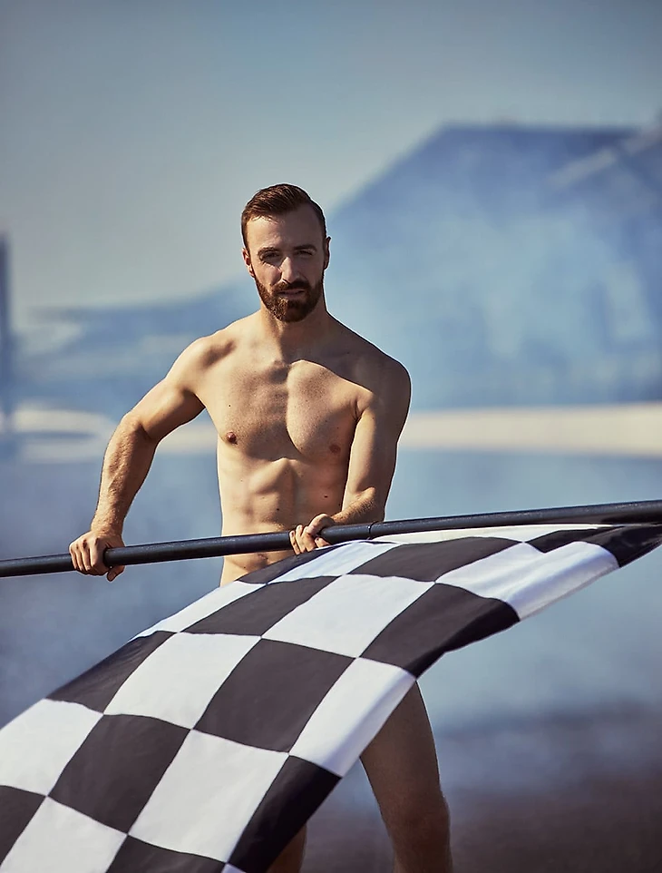 Канадский пилот снялся в эротической фотосессии для продвижения идеи «гонки – это спорт». На нем только шлем