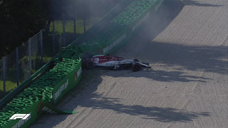 Райкконен попросту вошел в поворот на слишком большой скорости – машину снесло и повело в стену. Удар был серьезный: «Альфа» получила хорошие такие повреждения. Возможно, придется менять коробку или даже стартовать с пит-лейна.