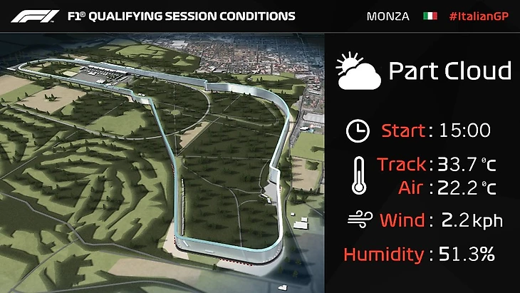 16:00 Начали! Квалификация стартует вот в таких условиях. Сегодня тепло и сухо, а вот завтра очень высока вероятность дождя.