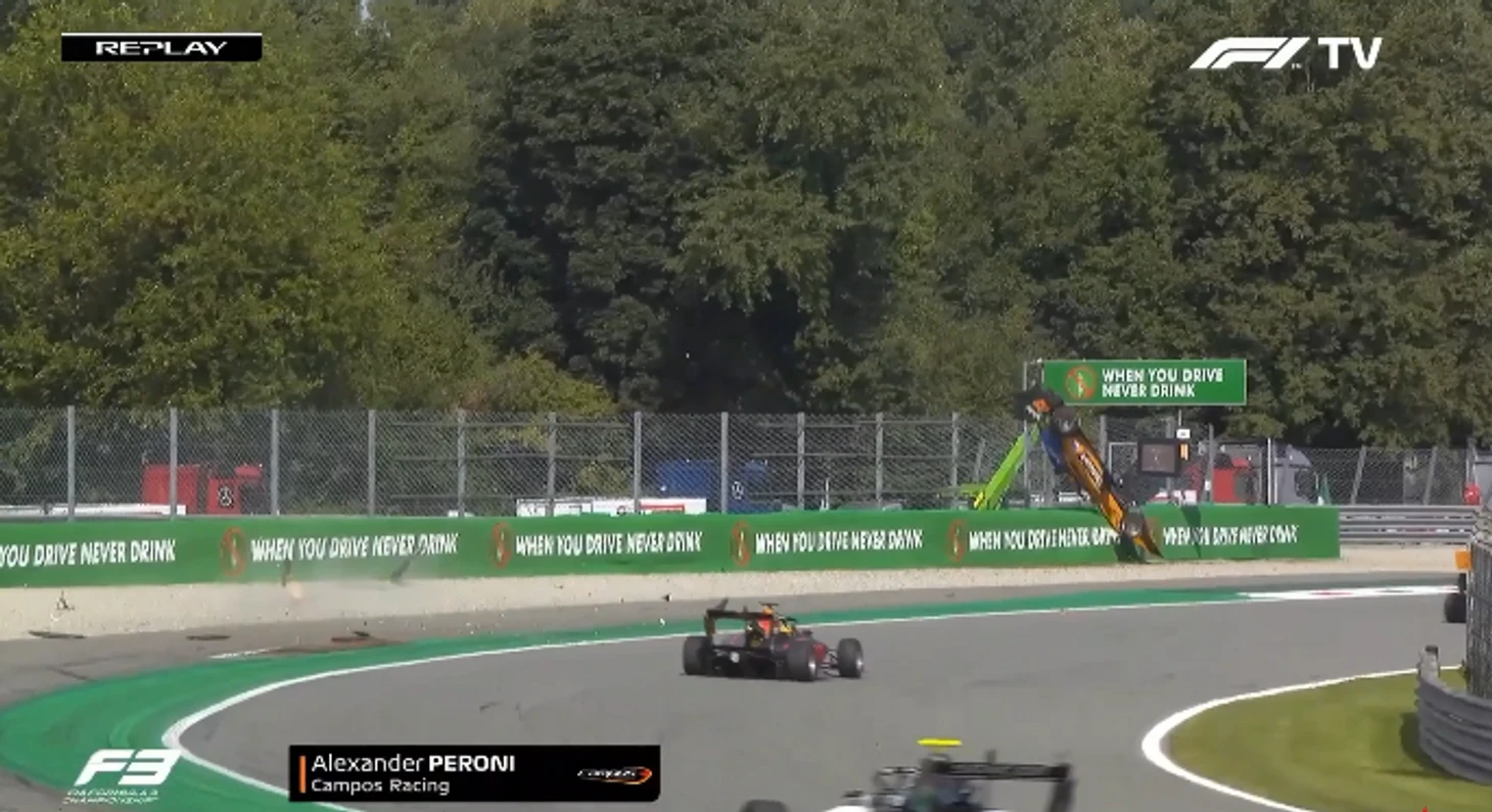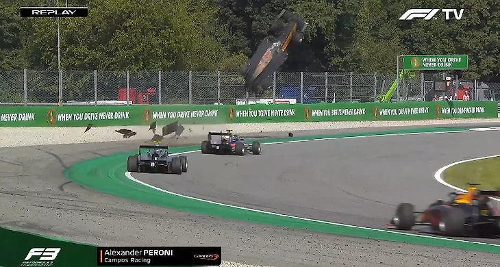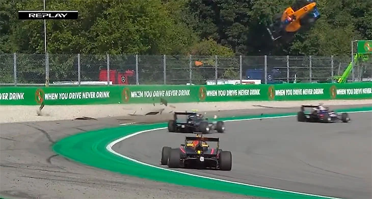 Сумасшедшая авария в «Формуле-3»: машина взлетела на несколько метров и упорхнула в барьеры