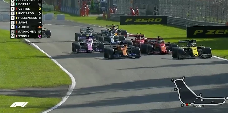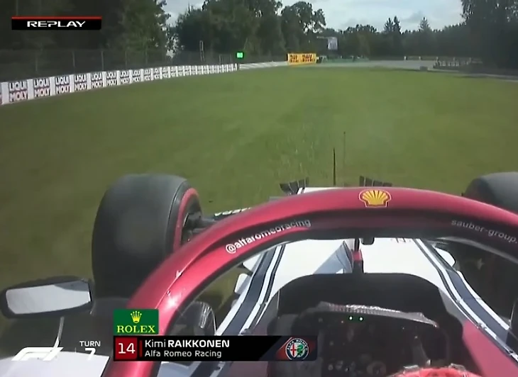 Во втором сегменте Кими Райкконен, "Альфа Ромео", широко вышел из поворота и вылетел в гравий, однако сумел вернутся на трек.