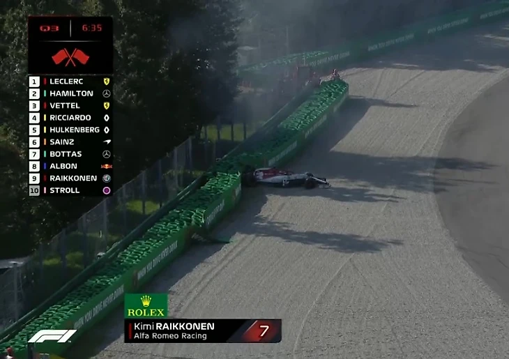 В третьем сегменте вновь ошибся Кими Райкконен, однако в этот раз с более серьезными последствиями.