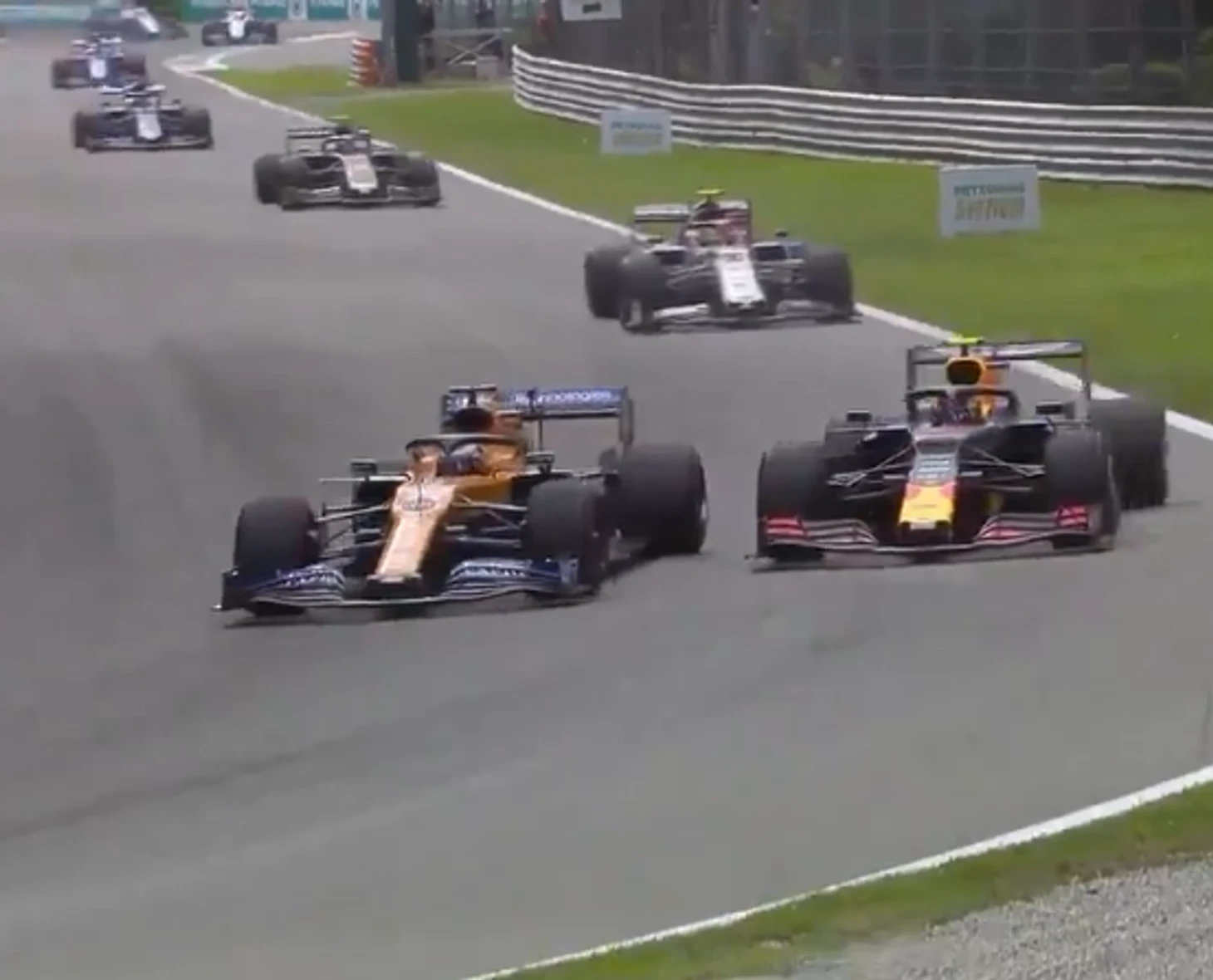 Тем не менее, самая жесткая борьба в той гонке осталась все-таки не в лидерской группе. Только взгляните на противостояние Александра Албона из «Ред Булл» и Карлоса Сайнса из «Макларена»!