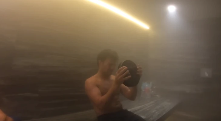 Безумная тренировка гонщика «Формулы-1»: качается в сауне прямо в шлеме