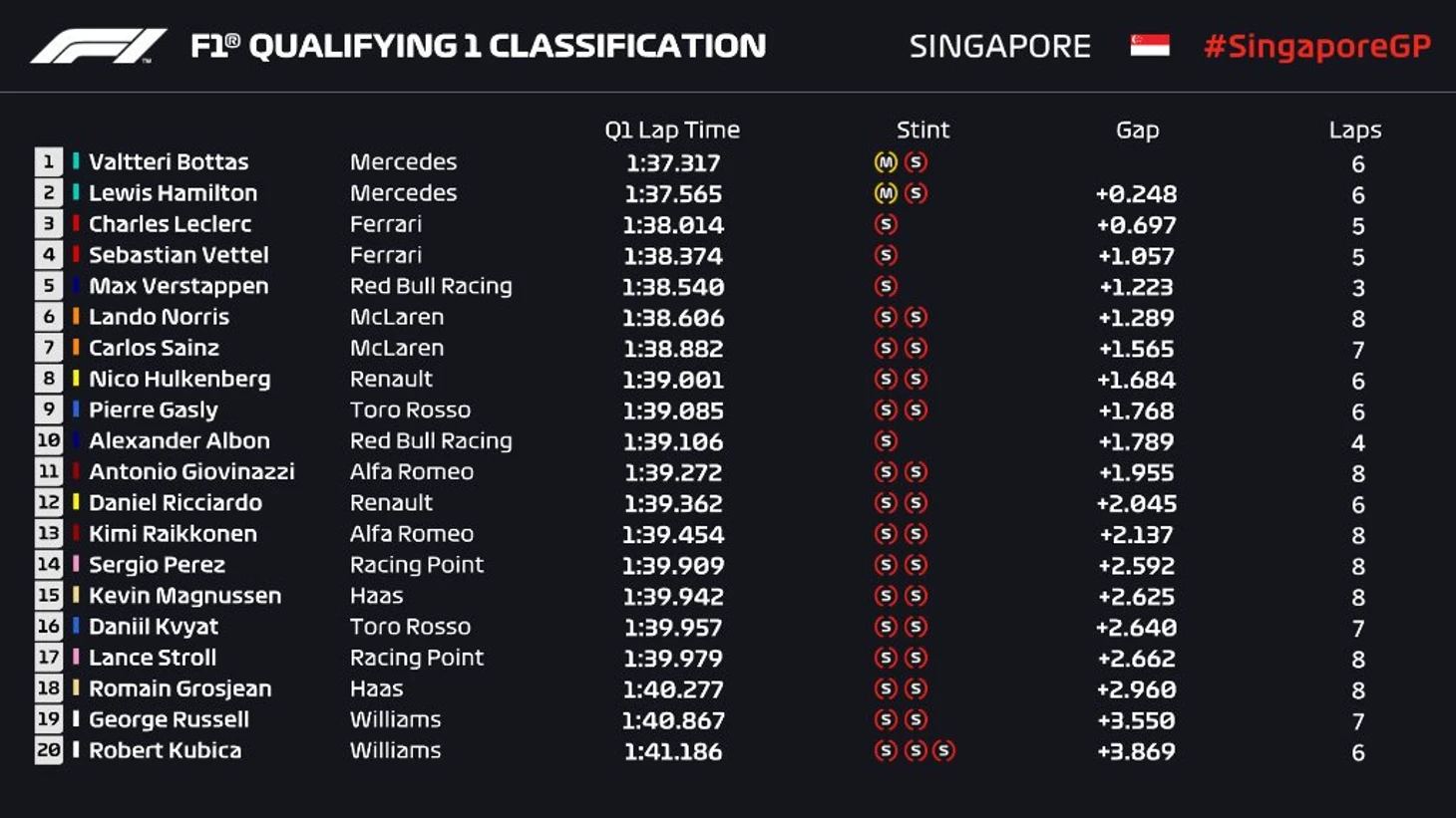 Вместе с Даниилом вылетают Стролл, Грожан, Расселл и Кубица.
