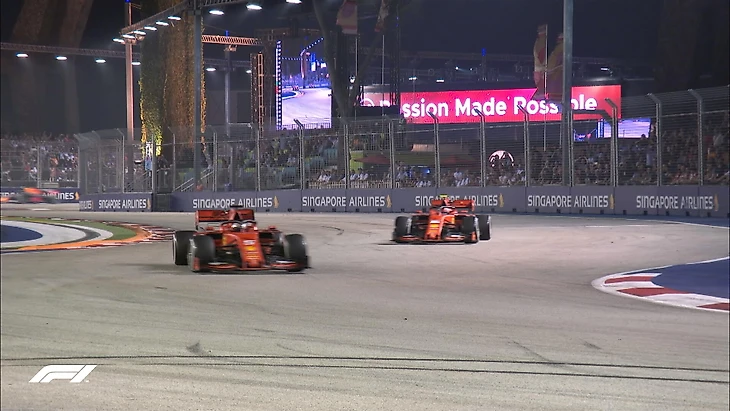 5-й круг Впереди Хэмилтон сократил отставание от Леклера, который несколько сбросил темп. Феттель же держится на некотором расстоянии от Льюиса, чтобы не перегревать шины. В Сингапуре очень жарко и технику приходится беречь.