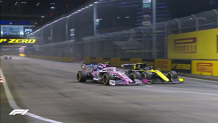 41-й круг Гонка возобновилась, впереди обгонов нет, а вот вне топ-10 Стролл зарубился с Гасли, повредил машину, проколол колесо и поехал в боксы!
