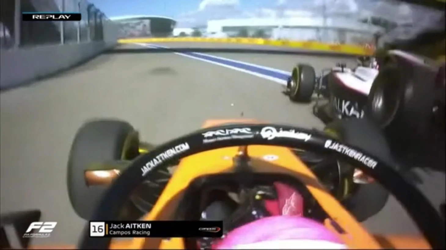 Эйткен это сделал, Мазепин – нет: поехал по более выгодной траектории и явно забыл про едущего слева конкурента. Тот не ожидал увидеть пилота «АРТ» справа и среагировать не успел, да и возможности избежать столкновения у него практически не было. При этом Никита ехал полным газом.