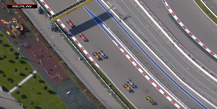 Половину стартовой прямой №5 проехал ровно за №16 – и все это время он еще даже не приблизился на дистанцию атаки.