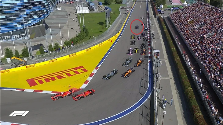 Квят же стартовал на еще более жестких шинах – казалось, последнее место к первому повороту просто неизбежно. Но он внезапно выиграл старт у обоих «Уильямсов», воспользовался ошибкой Райкконена, увернулся от всех столкновений впереди пелотона – и к середине первого круга уже был 13-м.