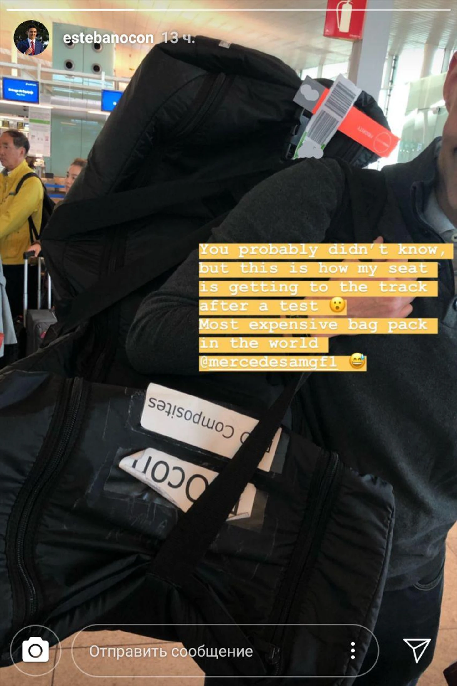 «Возможно, вы не знали, но именно так сиденье [для болида «Ф-1»] возвращается на трассу после тестов. Самый дорогой багаж в мире!» – написал Окон.