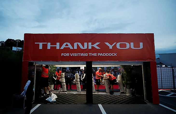 Еще маршалам и работникам трека пришлось перенести и перестроить в паддоке вообще все оборудование для съемок и трансляции Гран-при, поскольку у командного режиссерского центра «Формулы-1» мягкая крышка (по сути это одна большая палатка). Обычно на это уходит 2-3 дня, но теперь японцам пришлось уложиться в несколько часов – удивительно, но они справились. По рассказу репортера серии Теда Кравица, еще никому раньше не удавалось провернуть такое.