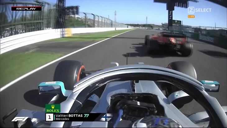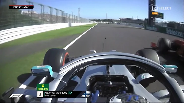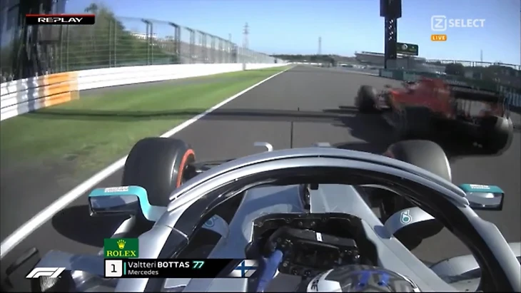 Второй – отличный старт самого Боттаса: он начал двигаться почти одновременно с затуханием стартовых светофоров и объехал замешкавшегося Себа. Реакция почти космического уровня того же Валттери на Гран-при Австрии-2018.