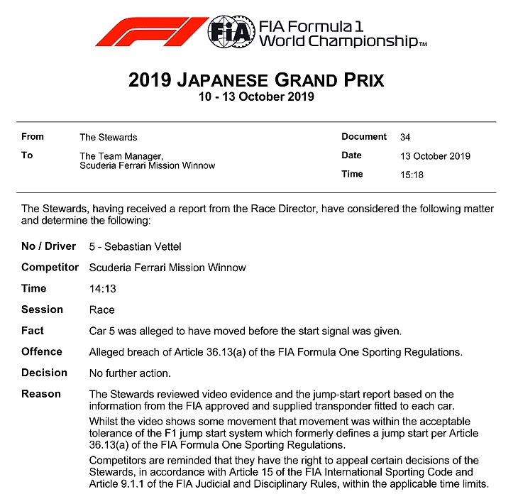 При этом допущения в 10 и 21 см как раз и существуют, чтобы дать пилотам шанс исправиться и не допустить получения критического преимущества, а также служат буфером на случай непредвиденных погрешностей. Да, Феттель ошибся, но хотя бы сделал это по правилам.
